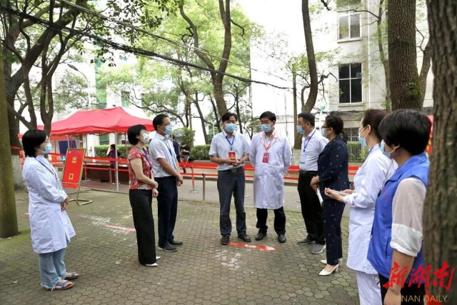 6月20日,湖南省卫生健康委副主任龙开超、医考中心主任易新娥等一行到考试基地巡考,实地察看了实践技能考试各个环节,详细了解医团队格实践技能考试组织实施等情况,对湘雅口腔医院在常态化疫情防控下,扎实组织好实践技能考试给予高度评价。湖南省卫健委医学考试中心督导高章峰考试期间全程督导、巡视,对考试的整体情况给予了充分肯定。