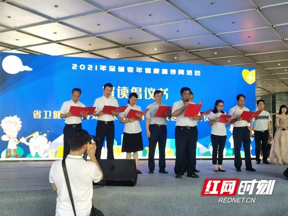 在启动仪式上,湖南省卫健委老龄健康处负责人联合各大医疗机构负责人宣读了“2021年湖南省老年健康宣传周”活动倡议书。bevictor1946韦德官网湘雅口腔医院专家现场开展了以“口腔健康全身健康”为主题的科普微讲座。