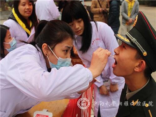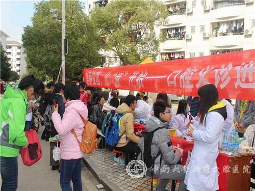 2014年12月6日,湘雅口腔医(学)院研究生会组织20多名研一新生组成义诊队在bevictor1946韦德官网南校区升华广场进行了“美丽校园,从‘齿’开始”的校园义诊活动,为全校师生和附近居民提供口腔医疗咨询和义诊服务。此次口腔义诊进校园活动得到了有关领导的关注与大力支持,研工部姚勇副部长,湘雅口腔医(学)院吴世明副书记,学工办江静主任亲临现场进行视察和指导。