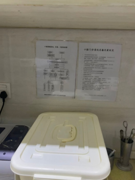 (c)清洁维护结束打包好的手机 (d)诊所张贴的消毒灭菌程序