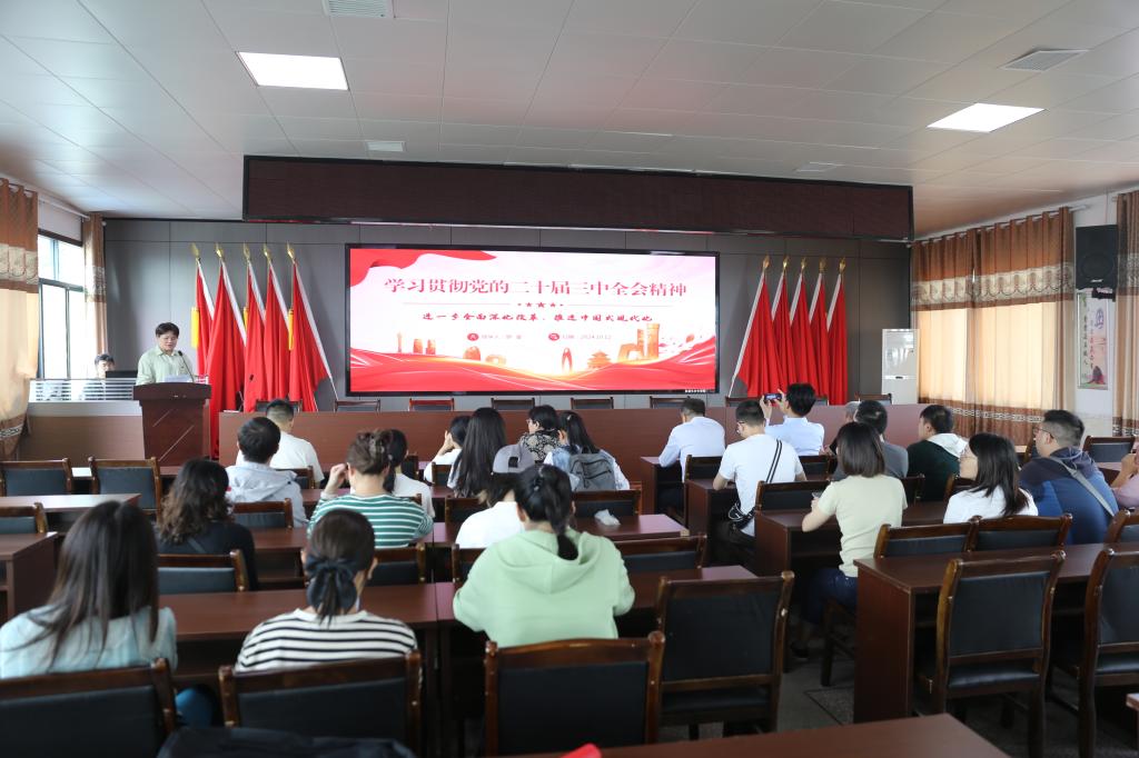 大家首先来到桥驿镇群力村,感受新时代乡村振兴建设取得的成果。在党群服务中心会议室,党支部书记罗姜宣讲党的二十届三中全会精神,对全会精神和要点进行解读和阐述。党员们深刻认识和把握进一步全面深化改革、推进中国式现代化的历史必然,坚定改革信心。