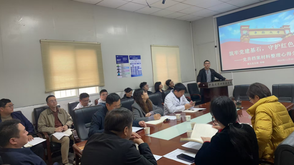 会上,第五党支部党员李铮对党员档案整理工作进行了经验分享。