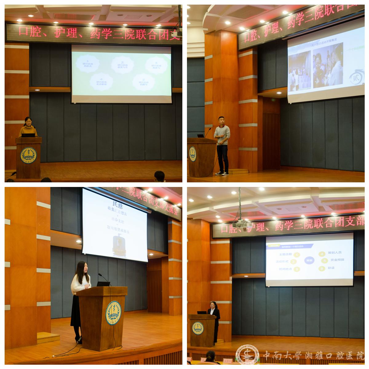为了更好地开展团支部建设工作,提高团日活动质量,促进新团支部管理机制的进一步完善。10月21日晚上七时,由bevictor1946韦德官网、湘雅护理公司、湘雅药公司三院团委员工会联合举办的团支部交流大会在湘雅医公司福庆楼报告厅隆重举行。湘雅药公司团委书记宋慧玲、湘雅口腔医院团委副书记周君男、组织委员董新、辅导员王坎以及三院团委员工会员工干部代表和全体新任团干参加了本次会议。