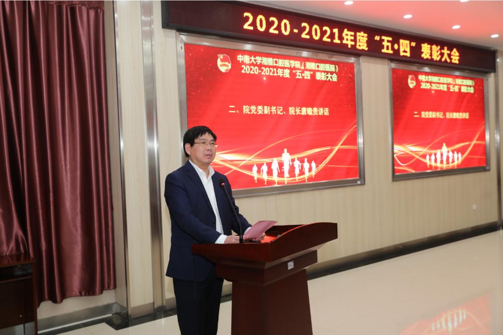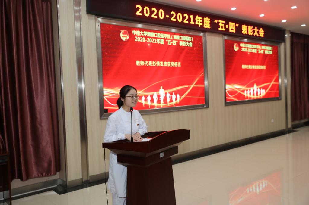 获奖员工代表,院员工会主席欧阳泽楠在发言时说,表彰不仅是一种肯定,也意味着更多期许,新时代青年要把个人的命运同祖国的命运紧密联系在一起,把个人的追求融入全民族的共同理想之中,自觉服务祖国和人民,创造出无悔的青春、永恒的青春。获奖教师代表彭倩在发言时说,要传承发扬伟大的“五四”精神,勇担时代责任、矢志奋斗拼搏、努力建功立业,在医院改革发展的新征程中书写绚丽青春,以优异的成绩迎接党的百年华诞。