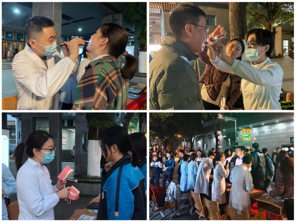 “医生,洗牙会让牙齿变松动么?”“拔智齿的最佳时期是什么时候?”“牙齿矫正应该什么时候去做?”宣教台吸引了众多师生前来咨询。活动现场,来自口腔预防科、口腔颌面外科、牙周科、口腔全科等学科的医护专家向师生们讲解了日常生活中的口腔卫生基础保健知识和口腔疾病预防措施,教学演示了巴氏刷牙法、牙线使用等技巧。针对同学们关心的龋齿治疗、拔智齿最佳时期、牙齿矫正等常见问题,专家们耐心解答,给出了指导性意见和建议,提倡减少高糖食品、饮料及碳酸饮料的摄入;警惕牙周炎,建议每年进行1至2次洁牙。口腔专家表示,《“健康中国2030”规划纲要》提出了以口腔健康为首的“三减三健”健康生活方式,强调口腔健康是全身健康的重要组成部分。口腔疾病一般进展缓慢,早期多无明显症状,因此不易察觉,需定期进行口腔健康检查,及时发现口腔疾病,及早治疗。呼吁个人要每天两次刷牙、定期口腔检查;家庭要督促孩子养成爱牙护齿良好生活习惯;公司可以定期开展健康宣教活动。