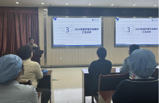 会上,护理部对2024年发生的每例护理不良事件均进行追踪和督导,对易发的不良事件及典型案例进行原因分析和经验总结。从多方面剖析事件的原因及潜在的护理安全隐患,从中吸取经验、总结教训,最终实现“以点带面,警钟长鸣”的效果,避免在今后的护理工作中出现类似问题。