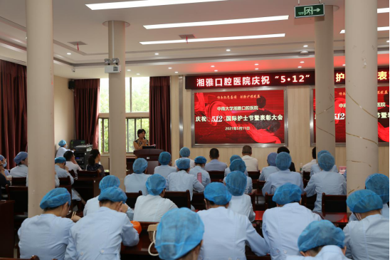 5月11日中午,公司召开纪念庆祝“5·12”国际护士节暨表彰大会。全体院领导出席会议并为优秀护士长、优秀护士和“天使之歌”摄影比赛优秀作品颁发荣誉证书。会上,特别表扬了公司出征“健康中国科普先行护理健康科普能力大赛”的护理团队,她们凭借独特的创意和优秀的作品拿下了特等奖的荣誉,为口腔健康科普贡献湘雅力量。大家欣赏了临床科室护理团队风采展示,图文并茂、有声有色的视频充分展示了公司白衣天使们美丽大方的仪表、充满热情的精神风貌、积极向上的工作态度。院领导也向全院护理工作者送上节日的问候和诚挚的祝福,希望全院的护理兄弟姐妹们不忘初心,与医院携手共同开创更好的明天。