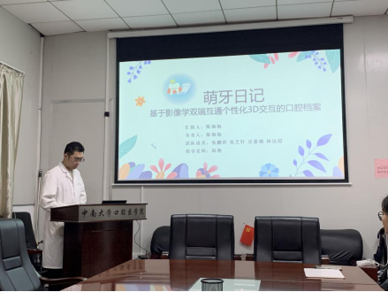 会上,各项目组负责人从研究内容、研究方法、项目成果等方面进行了汇报。罗刘旖团队创新性推出了口腔不良习惯监督系统—“萌牙卫士”小程序,围绕“虚拟交互-电子记录-全套科普-数字就医”等服务,对儿童不良口腔习惯进行监督,同时通过搭建线上商城与线上问诊平台,连线公司儿童口腔科医生,结合交互记录内容,针对性的开展线上问诊。洪梦妮团队通过论证舍格伦综合征这一自身免疫疾病中NF-ƙB/NRF2通路为产生IL-33的重要机制,首次明确了炎症为环境下NF-ƙB与NRF2的上下游关系及作用机制,为研究炎症微环境下间充质干细胞修复组织的作用提供新思路。黄思珂团队研发搭载新型复合材料的口腔癌预后评估唾液分析仪以减轻患者的恐惧;王颖团队立足实践,深入社区和乡村开展口腔科普活动,有效的提高了人们的口腔健康意识。评委老师针对各项目进行了提问和点评,并给出了指导意见,开拓了员工们的研究思路,使同学们受益匪浅。