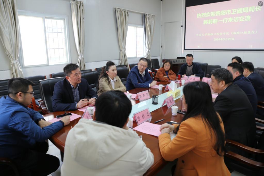 出席会议的还有贵阳市卫健局副局长朱恺、综合处副处长杨德龙、交流合作处处长余美娣,贵阳市口腔医院办公室主任刘承志,公司综合办主任胡小平、医务部主任罗姜。