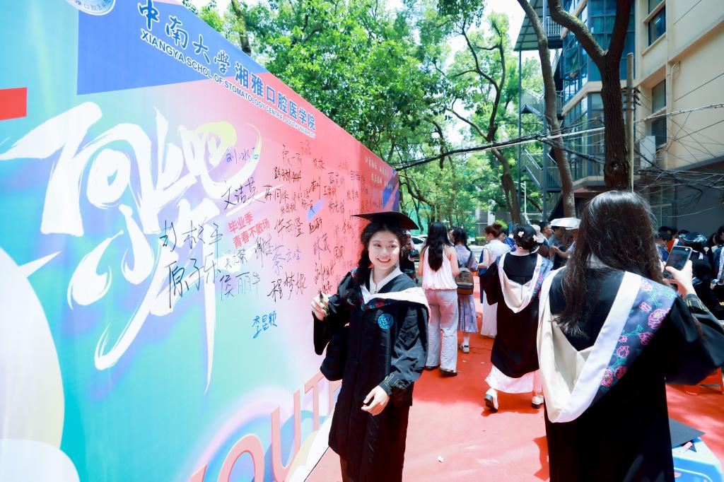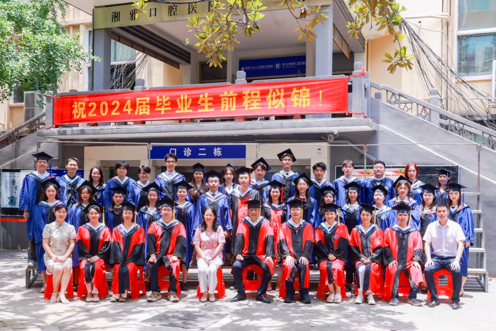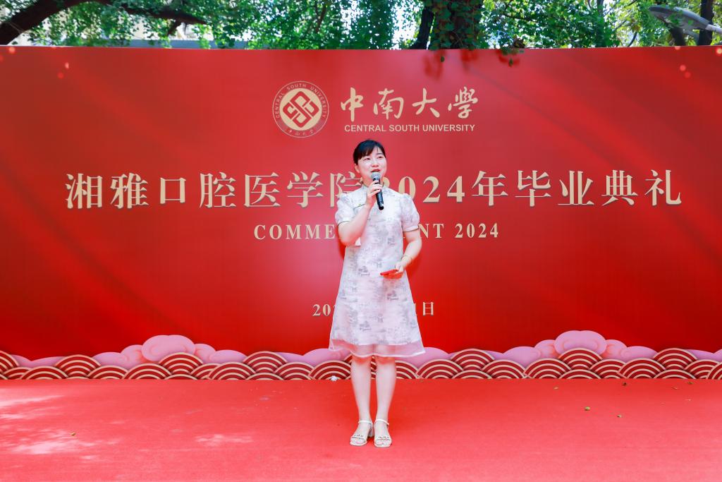 口腔医学(5+3)1902班的全铭轩在毕业生代表发言中,深情回顾了5年来的求学之路和校园生活难忘点滴,祝愿每一位毕业生在未来的人生旅途中,都能收获丰硕的成果,实现自己的理想!他号召大家肩负起更加重要的责任,“让我们成为维护人们口腔健康的守护者,让我们的手成为治愈疾病的神奇之手,让我们的知识成为传播健康理念的基石,为国家医疗卫生事业的发展贡献一份属于湘雅口腔的力量。”