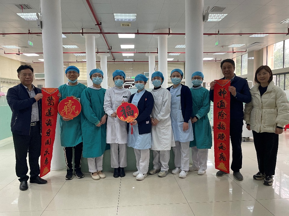 写好春联和福字后,院领导班子带领工会委员们分多路前往各科室一线岗位,将春联和福字送到奋战在一线的医护人员手中,也将新春祝福送达大家心里,对他们在节日期间坚守岗位、守护患者健康的奉献精神表示衷心感谢。经理刘欧胜也代表医院管理层,向奋战在临床一线的全体医务工作者致以最诚挚的节日问候和崇高的敬意,希望在新的一年大家携手共进,为全院发展、为人民群众健康事业再立新功。