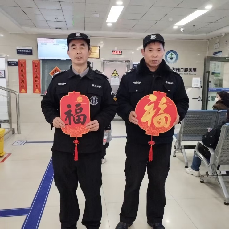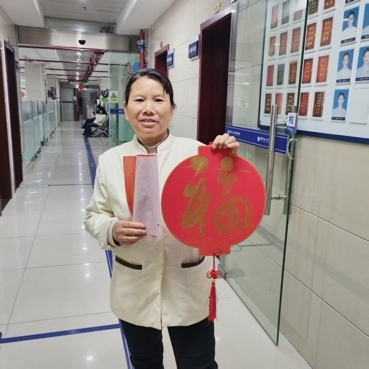 就诊群众、安保人员、后勤工作人员等也收到了新春的祝福。安保人员李叔和彭阿姨表示:“这份礼物让我们感受到了医院的关怀,春联和福字不仅增添了节日的氛围,也让我们觉得自己的工作得到了认可和尊重,新的一年我们会更加努力,我们会更加认真地做好保洁和保安工作,确保医院安全有序环境干净优美。”