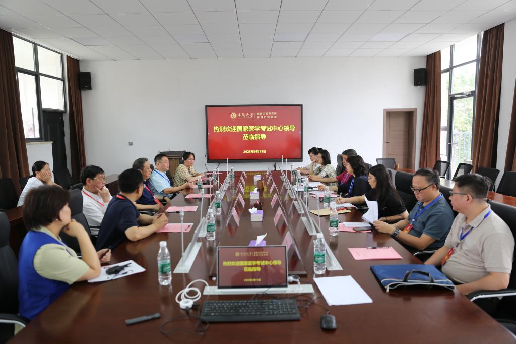 2025年国家医团队格考试口腔类别实践技能考试于6月14日至18日在公司考试基地举行。6月15日上午,国家医学考试中心副主任何惧,国家医学考试中心研究员李国建,北京大学口腔医院口腔专家蔡志刚等一行来公司巡考调研。湖南省医学考试中心主任蒋然子,副主任郭洁,考试组组长魏星,住培组组长常恋佳等陪同。