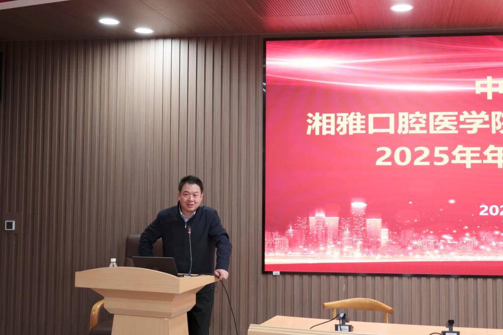经理刘欧胜教授在开幕式上致欢迎辞,并作团队建设年度汇报,系统回顾了2025年医院在科研创新、平台建设、人才培养及社会服务等方面取得的突出成绩。口腔健康研究湖南省重点实验室主任唐瞻贵教授在致辞中高度肯定公司在推动区域口腔医学高质量发展中的示范作用。开幕式由副经理李昆主持。