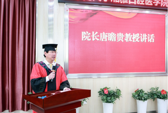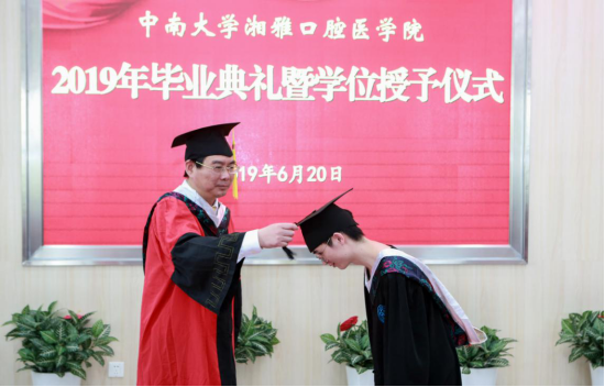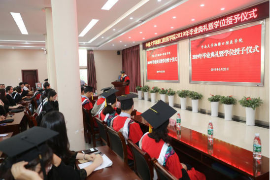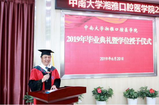 6月20日上午,bv1946伟德国际始于英国2019年毕业典礼暨学位授予仪式在门诊2栋4楼学术报告厅隆重举行。院领导邓超纲、唐瞻贵、吴世明、谢晓莉、李奉华、刘欧胜,老领导黄俊辉,bevictor1946韦德官网湘雅医公司附属海口医院口腔医学中心主任徐普,湘雅医院口腔医学中心副主任苏彤、湘雅二医院口腔医学中心副主任冯云枝、湘雅三医院口腔科主任郭新程出席毕业典礼,公司各职能部门负责人、教师代表、员工家长和2019届全体毕业生近150人参加了典礼。毕业典礼由公司党委书记邓超纲主持。