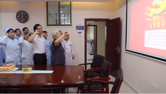 湘雅口腔医学教育创始人之一沈子华教授今年已经85岁高龄,也是一名有着63年党龄的老党员,她受邀来到活动现场为党员们亲身讲述自己的入党故事,重温那段光辉岁月。“现在大家都在讲不忘初心,我是1956年入党,当时新中国成立以后百业待兴,我们那时候的初心就是要向建立新中国的革命先烈们学习,努力工作,把自己的青春献给祖国,全心全意为人民服务。”沈子华教授还回忆起当年创建口腔系的峥嵘岁月,勉励在场的年轻同志在新时代更要守初心、担使命,通过大家共同努力把湘雅口腔医学事业发展得更好。