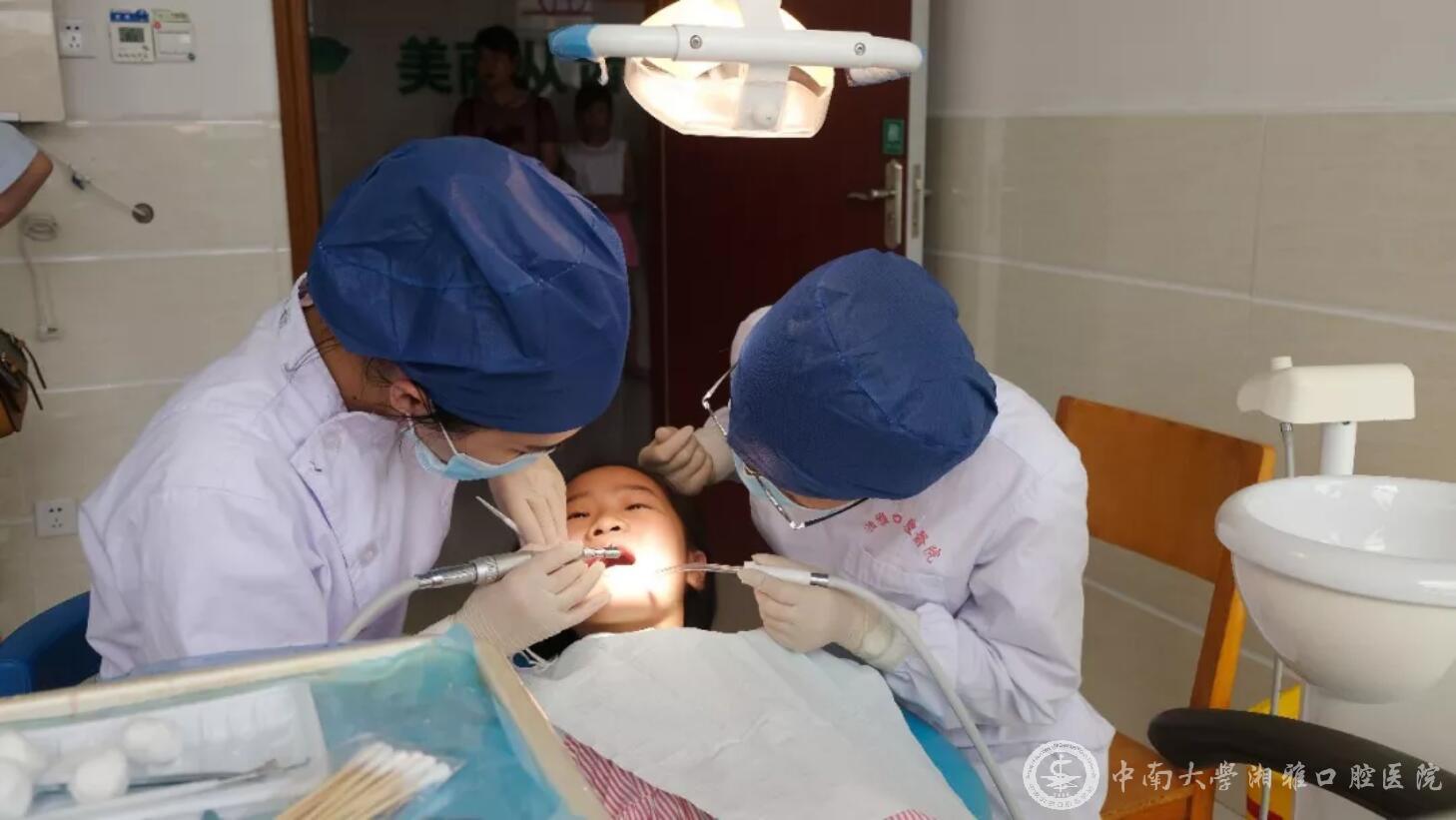 22日下午,金扇子党员博士实践团在县中医医院口腔科开展儿童窝沟封闭和涂氟防龋活动,在多名医生的共同努力下,60余名儿童得到了相应治疗。