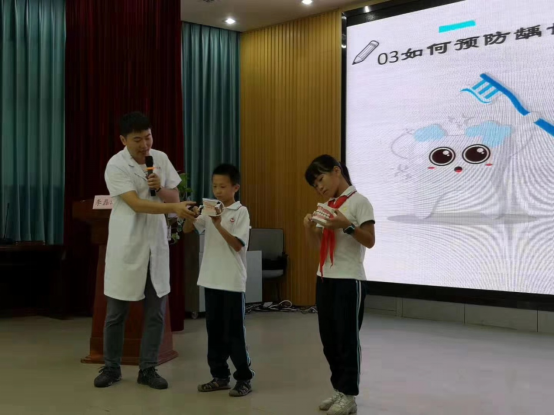 9月17日下午,公司儿童口腔科、预防科医生李磊涛在清水塘二小给五年级孩子带来了一场精彩的儿童口腔保健讲座,讲座生动活泼,引得互动连连。刷牙比赛、有奖竞答更是加深了孩子们对口腔健康的理解。随后,志愿者为到场的两百多个孩子进行免费的口腔检查,并发放儿童口腔保健宣传资料。