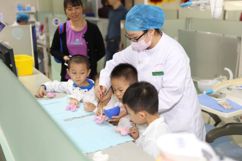 9月19日~ 9月25日上午,省委机关新湘幼儿园大班孩子及家长来公司参加“我是小牙医”活动。在工作人员的带领下,孩子及家长首先参观了医院各科室,了解了医院各科室的功能,随后进行了两人一组的小牙医体验,孩子们在牙椅上由医生指导相互检查牙齿,并且制作牙齿模型。体验完小牙医,每组的带教医生为孩子及家长进行了口腔卫生宣教、免费口腔检查及口腔健康咨询。