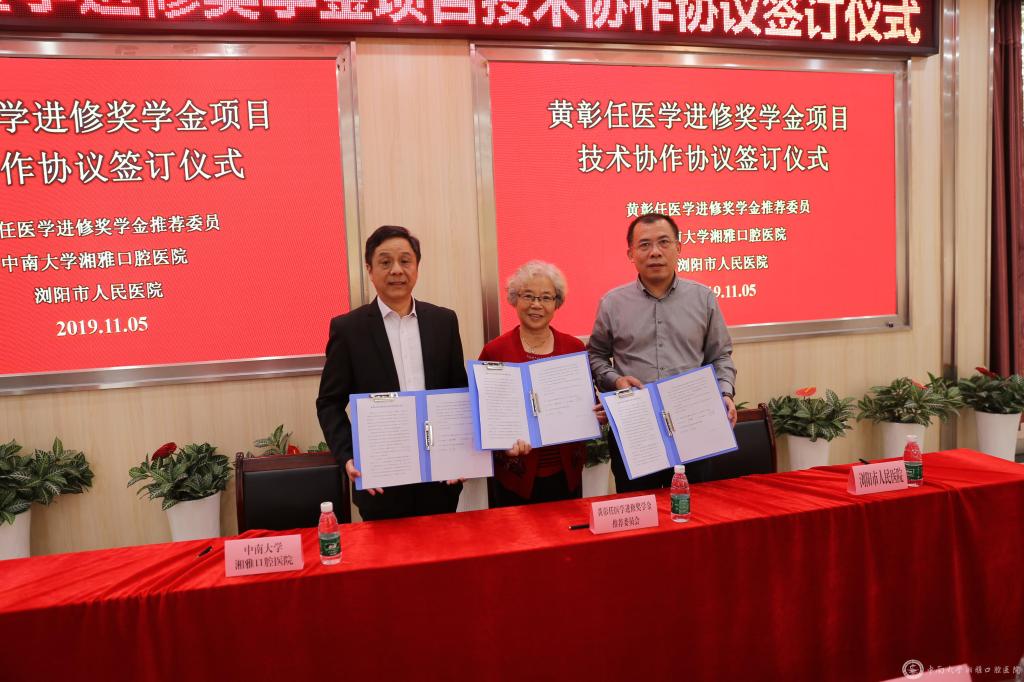11月5日,bevictor1946韦德官网湘雅口腔医院与浏阳市人民医院、黄彰任医学进修奖学金推荐委员会共同签订黄彰任医学进修奖学金项目技术协作协议。协议的签订旨在建立湘雅口腔医院与浏阳市人民医院、黄彰任奖学金推荐委员会的长期协作机制,为更多优秀中青年医生搭建发展平台,从而实现共同发展、互利共赢。