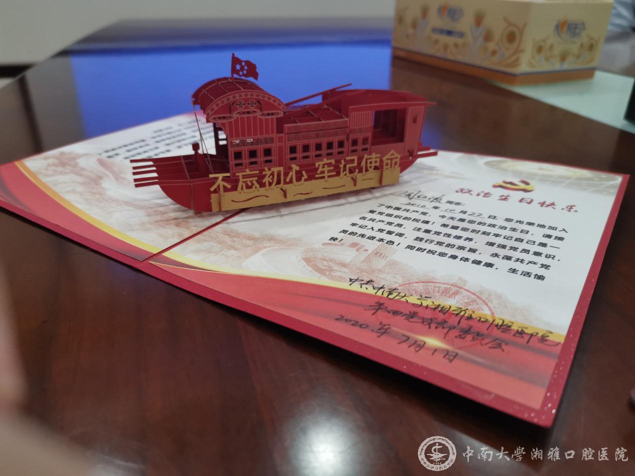 活动时,每一位党员同志还收到了一张政治生日卡,大家纷纷表达了自己想对党说的话,“坚定理想信念,争当优秀共产党员”“不忘初心跟党走,牢记使命记心中”,一句句寄语,深切抒发了党员们对党和国家的厚爱与深情,表达了永远跟党走的决心和信心。