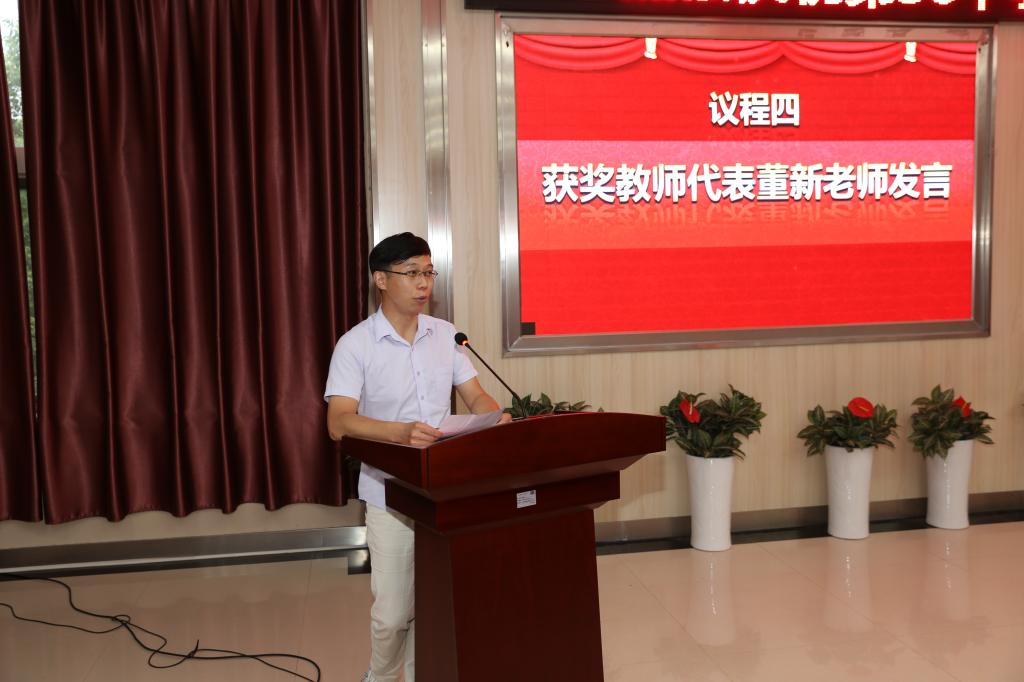 获奖教师代表董新在发言中分享了自己从事教学工作8年来的所思所感,表示会将教学作为自己热爱的事业坚持下去,全面落实立德树人根本任务,做好员工成长成才的引路人。