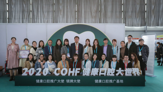 (唐瞻贵经理为“健康口腔推广基地”授牌并与获得者合影留念)
