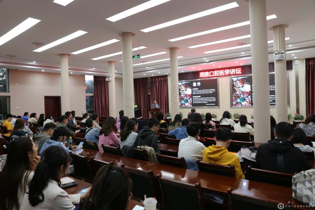 当晚,李铁军教授还为“湘雅口腔讲坛”作了一场精彩纷呈的学术报告,他以《遇见意外》为题,用显微镜下绚烂多姿的病理标本世界,将科学抽象成艺术,上升为哲学,用摄影艺术的魅力展现医学人文的重要性,引导师生感受生命的奇迹和独一无二,给大家提供了诸多新奇的思路和想法。