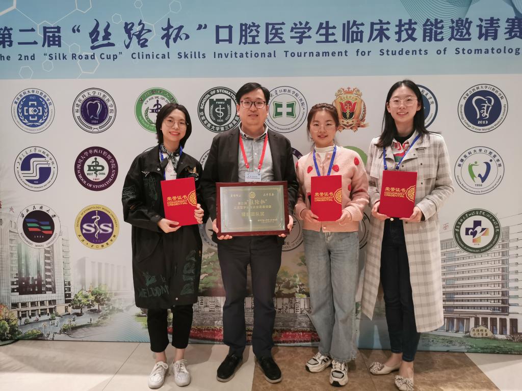 11月7日,由空军军医大学口腔医公司举办的第二届“丝路杯”口腔医员工临床技能邀请赛在西安举行,来自国内24所院校的师生参加了本次比赛。由公司教务部李昆主任带队,崔辛燕、涂画及邵舒慧三位同学组成的本科生组和由牙周科刘斌杰主任带队,陈月沙、曾春玉及王者馥组成的研究生组,凭借过硬的专业素养,在比赛中不畏强手,沉着冷静,精心操作,分别斩获本次比赛的精益团队奖和下颌智齿拔除缝合术优秀奖。