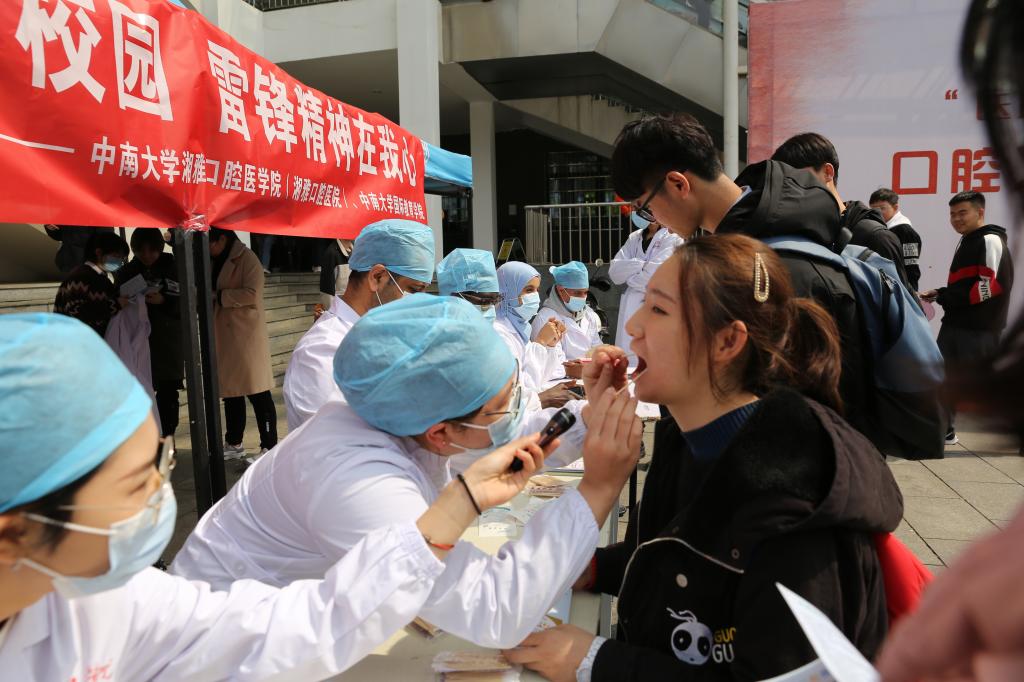 3月4日,“学雷锋纪念日”前夕,bv1946伟德国际始于英国(湘雅口腔医院)联合国际教育公司在校园内开展了“医路同行·雷锋家乡学雷锋”口腔义诊&科普宣教活动,为广大师生提供专业的口腔保健知识及检查,向大家普及和传递正确的口腔保健理念和方法。参与活动的志愿者中不仅有中国青年,也有不少来自海外的新面孔。