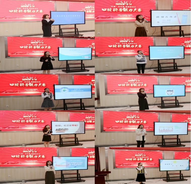 5月12日晚,2022年口腔健康科普能力大赛拉开帷幕,大赛以“‘天使’传科普、健康新时代”为主题,旨在提升护理人员临床健康宣教水平,改善临床护理服务能力,强化护理队伍人才建设,提升护理工作者的科普作品创作水平。大赛特邀各临床医疗科室主任、人力资源部主任、科教办主任、医务部主任担任比赛评委,大赛同时进行线上直播。