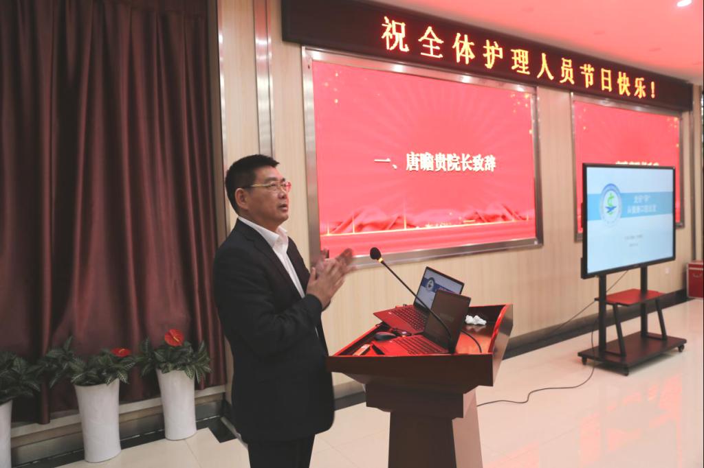 比赛开始前,唐瞻贵经理致辞,向全院护理工作者致以节日的问候和崇高的敬意。他指出,护理工作者是人民健康的守护者、仁爱精神的传播者和人类命运共同体理念的践行者,多年来,公司的护理工作者为医院建设发挥了重要作用,在疫情防控、口腔护理专业发展、口腔护理服务与管理等方面取得了优异的成绩,希望全院护理工作者继续团结,秉承南丁格尔精神,为推动医院发展作出新贡献。