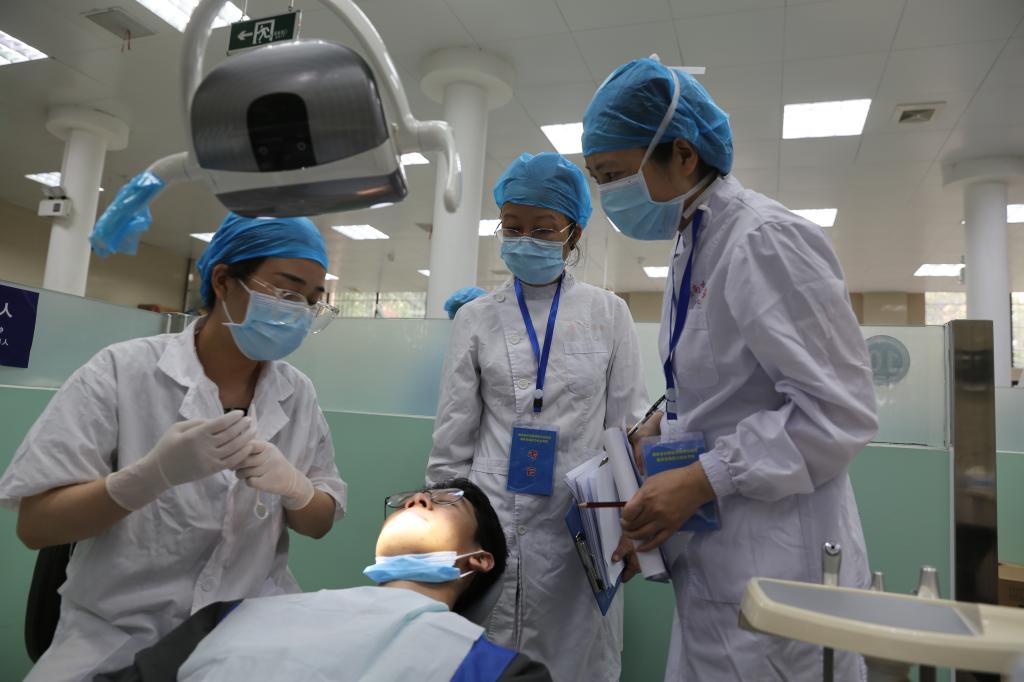 本次考核改革采用客观结构化临床考核(Objective Structured Clinical Examination, OSCE)方式,根据《住院医师规范化培训内容与标准》,要求掌握的各项基本操作技能,考核内容包括接诊病人、开髓术、前牙烤瓷冠牙体预备、牙周龈下刮治和根面平整术、口内切开缝合等全科综合项目,其他专科分别根据专业特点进行不同项目的加试,专业不同考站由5站-6站不等,通过操作演示、笔试、口头回答等考核形式,更加全面、灵活,更直观评估考生的临床实践能力,检验考生的岗位胜任能力和临床应用能力。