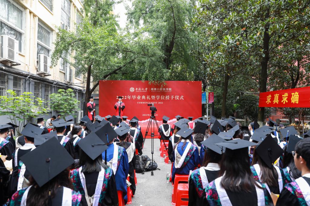 典礼上,副经理刘欧胜宣读优秀毕业生表彰决定,授予苏楷欣、苏晓琳、李安琪、陈百柯等4名同学湖南省优秀毕业生称号,授予刘春迪、杨岷武、魏泽宇、程静怡、孙天翱、石菲菲、林琳妮、刘俊辉、唐剑飞、张志宇等10名同公司优秀毕业生称号。副经理李奉华宣读授予学位决议,授予周子睿等74名同学医学学士学位;授予李兴等18名同学口腔医学硕士专业学位,授予王敏远等4人口腔医学硕士学术学位;授予宾心口腔整形美容学博士学位。随后,唐瞻贵经理为获得学位的毕业生代表颁发证书,挑苏留影。