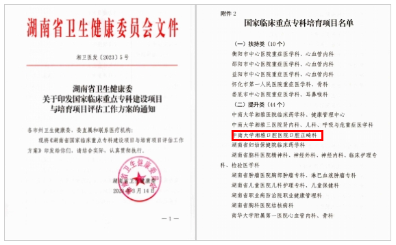 近日,湖南省卫生健康委印发了关于《国家临床重点专科建设项目与培育项目评估工作方案的通知》,公司正畸科成功获批“国家临床重点专科培育项目”,这也是全省口腔正畸领域唯一获批单位。