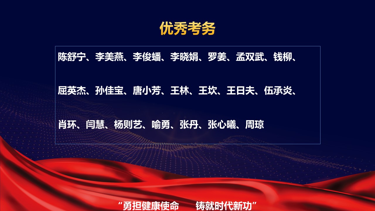 8月17日下午,医院在门诊二栋401会议室举行2023年“中国医师节”暨国家医团队格考试表彰大会,对过去一个年度在医务工作中涌现的一批先进个人和集体予以嘉奖,营造尊医重卫的良好氛围。全体院领导班子成员出席并为获奖人员颁奖。谢晓莉副经理主持大会,李奉华副经理宣读表彰决定。优秀住院医师陈雪发表获奖感言,表达了自己继续弘扬救死扶伤的人道主义精神,争做有情怀的医者的决心。