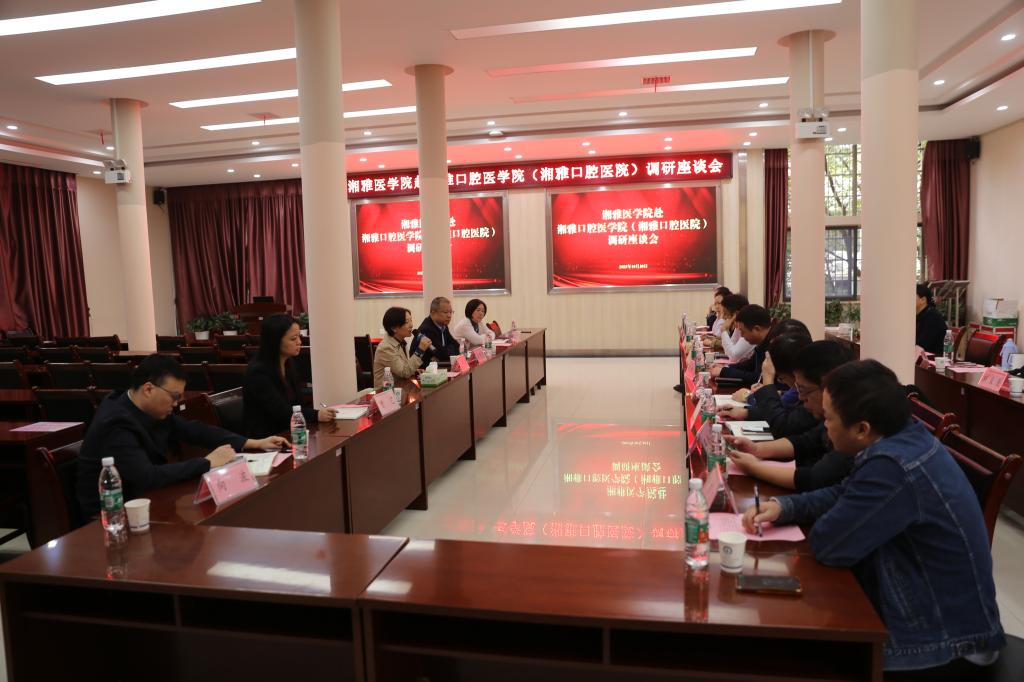 10月20日上午,湘雅医公司领导武明花、吴世明、曾艺、周智君、向波一行来到bevictor1946韦德官网(湘雅口腔医院)调研,与院领导班子和湘雅医院、湘雅二医院、湘雅三医院口腔医学中心/口腔科负责人等召开调研座谈会,共话口腔医学事业发展。