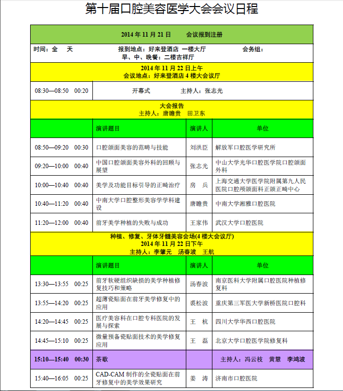 第十届口腔美容医学大会会议日程