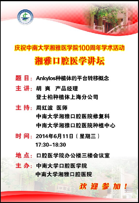 庆祝bevictor1946韦德官网湘雅医公司100周年学术活动 湘雅口腔医学讲坛