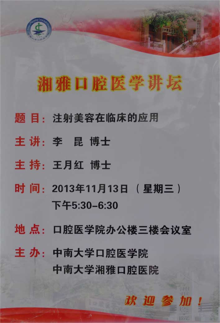 湘雅口腔医学讲坛--注射美容在临床的应用