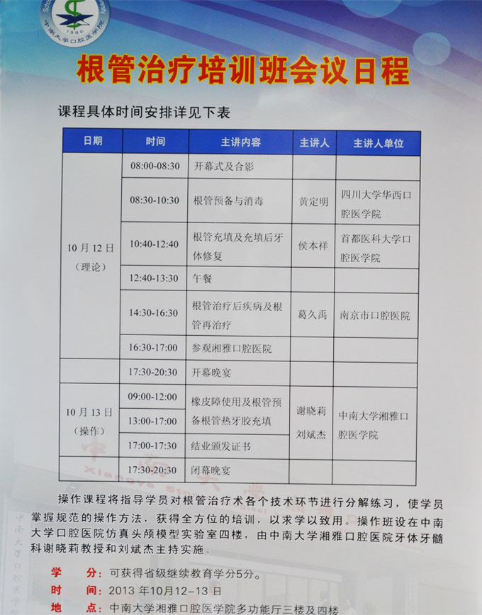 根管治疗培训班会议日程