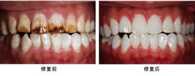 对氟斑牙、四环素牙等变色牙进行无创美白。